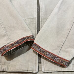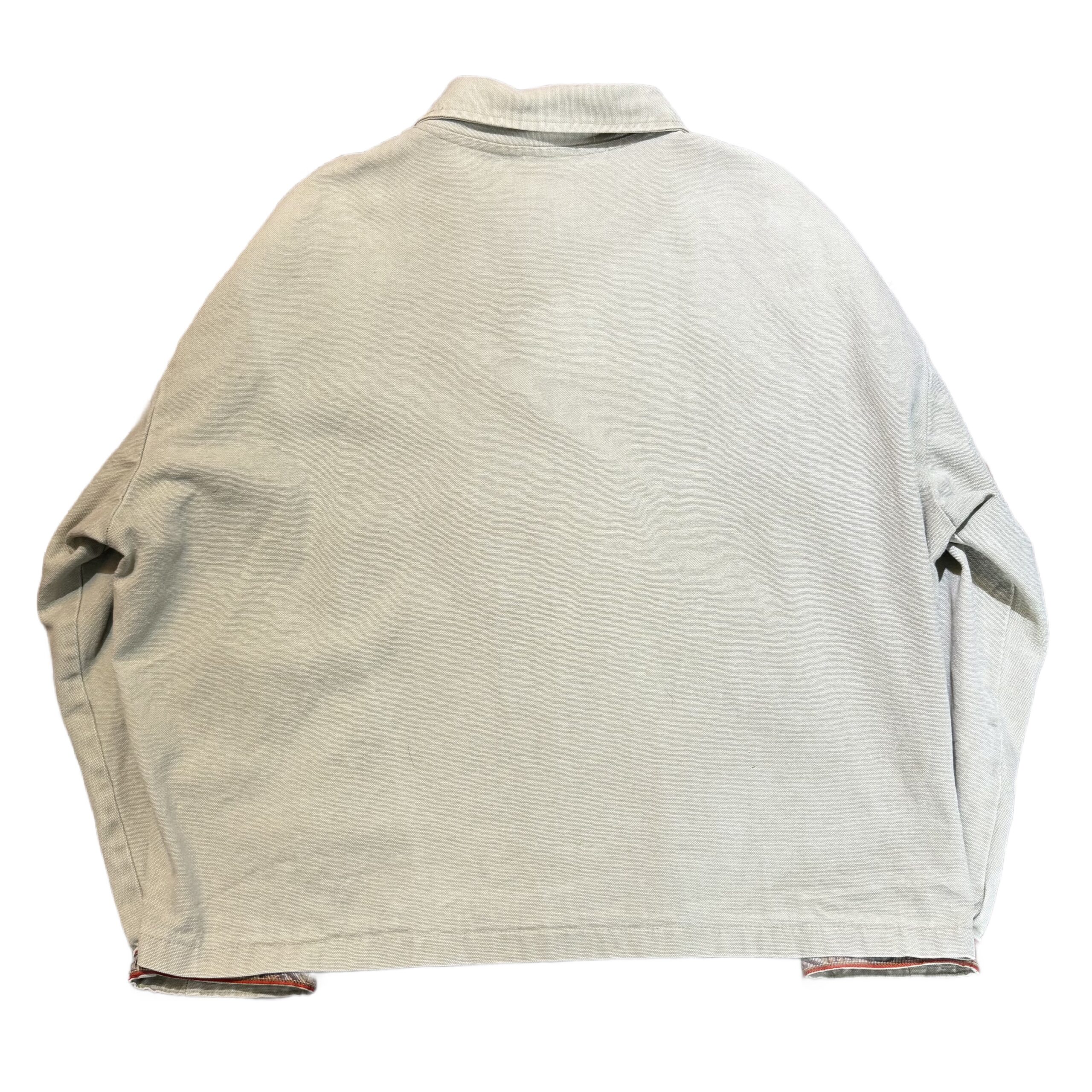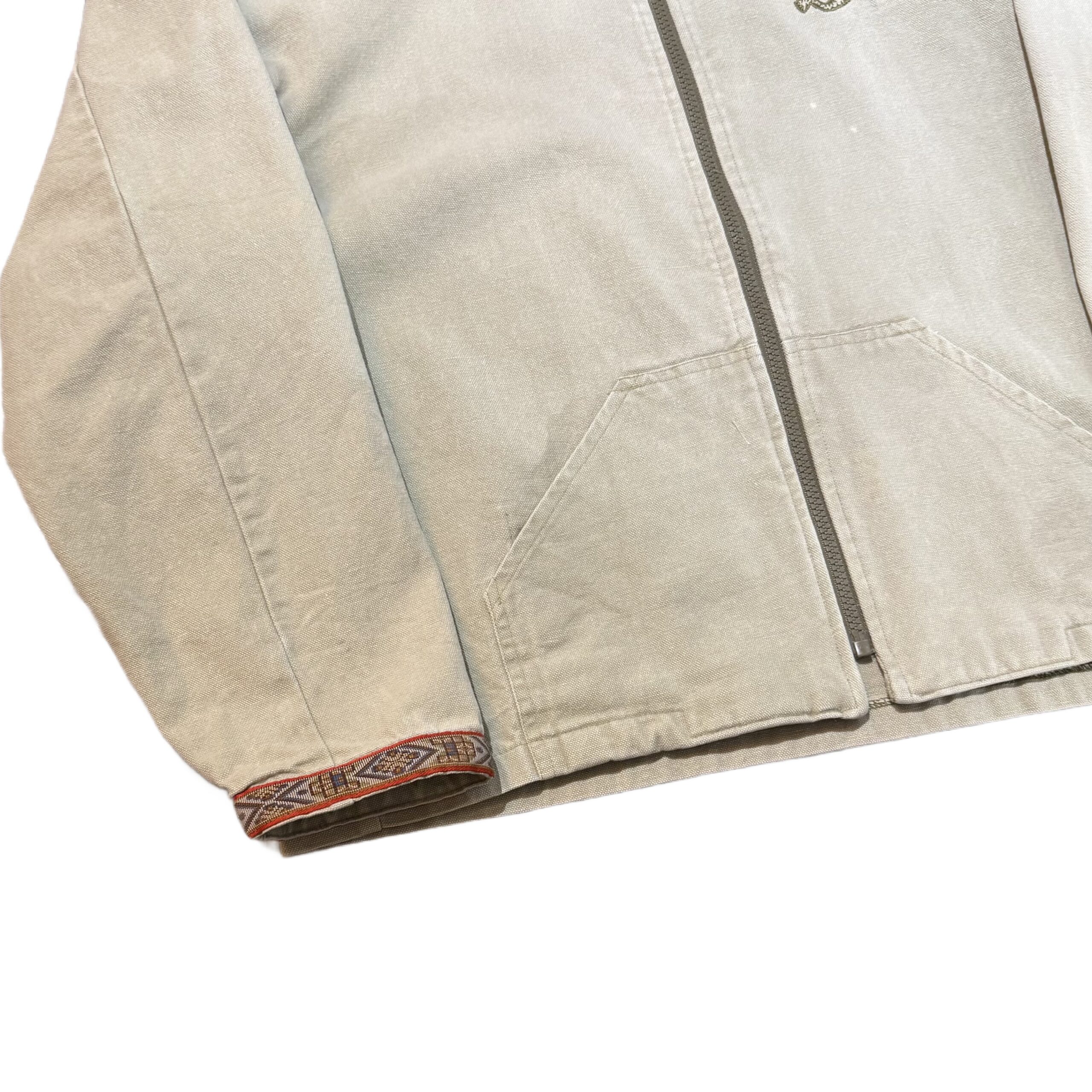 ベージュカラーのダック生地で構築された一着。袖口に施されたデザインもグッド。Mサイズ表記ですが、Lサイズ程の大きさはあります。商品状態も比較的良好で、多少の古着感はございますが、着用に問題のある大きな破れやダメージ等は見当たりません。