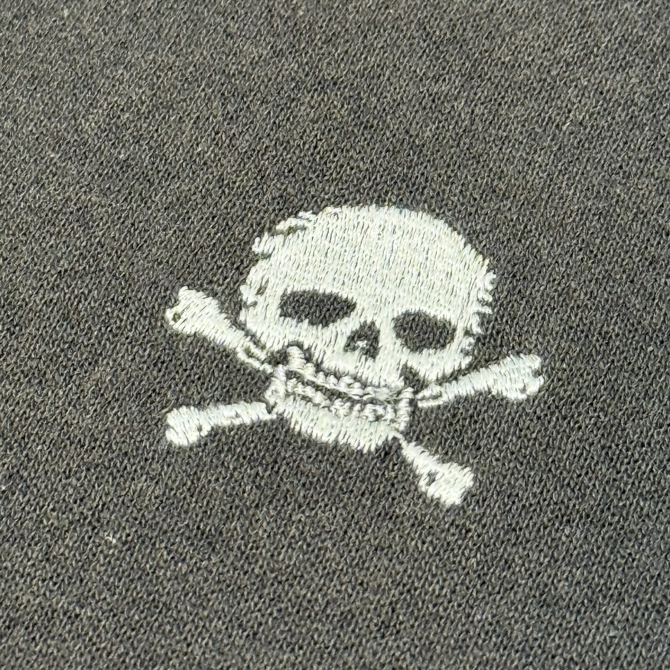 炭黒にフェードしたボディに、スカルの刺繍がワンポイントで施されたシンプルイズベストな一着。どんなスタイルにも合わせやすく、一着持っておくとかなり便利かなと思います。