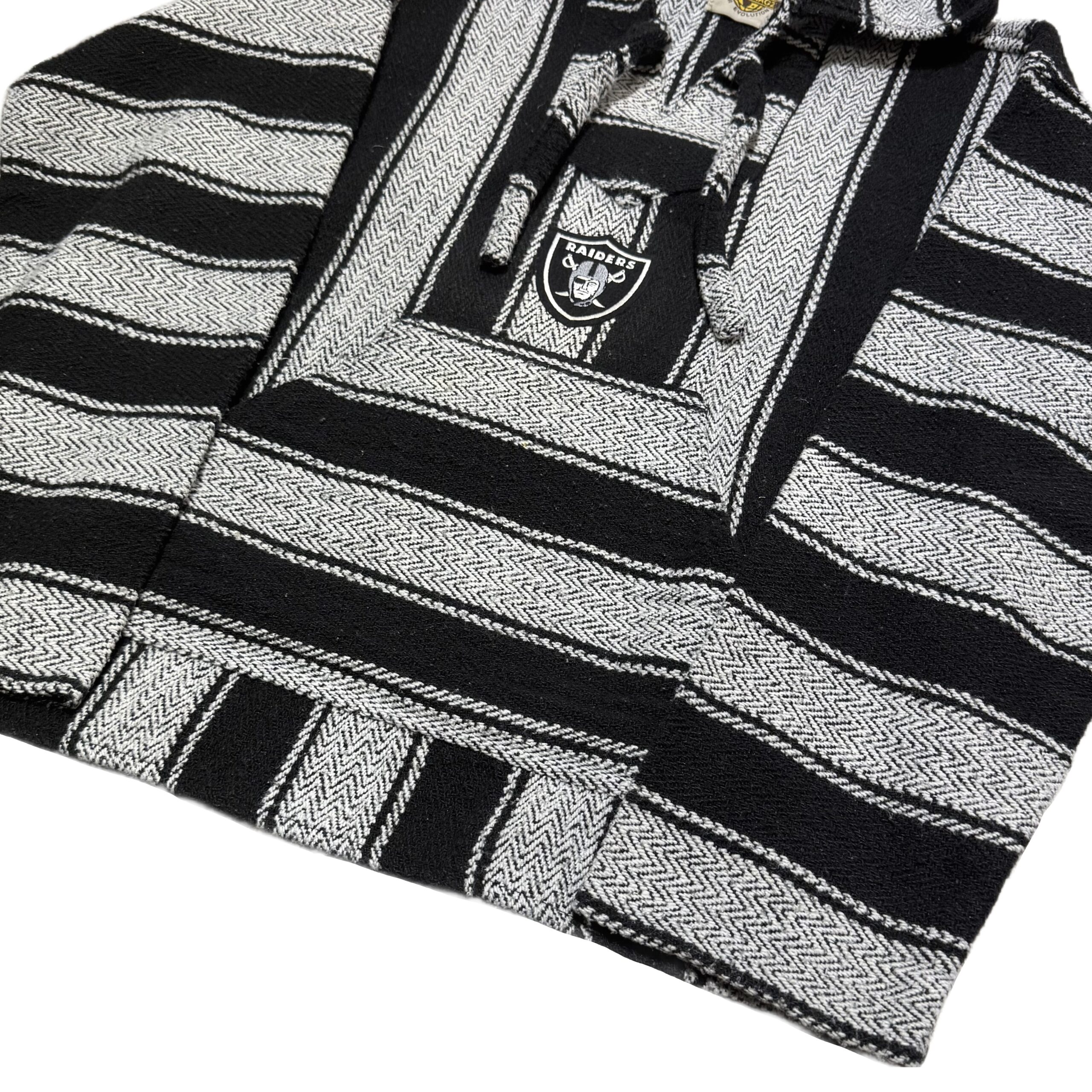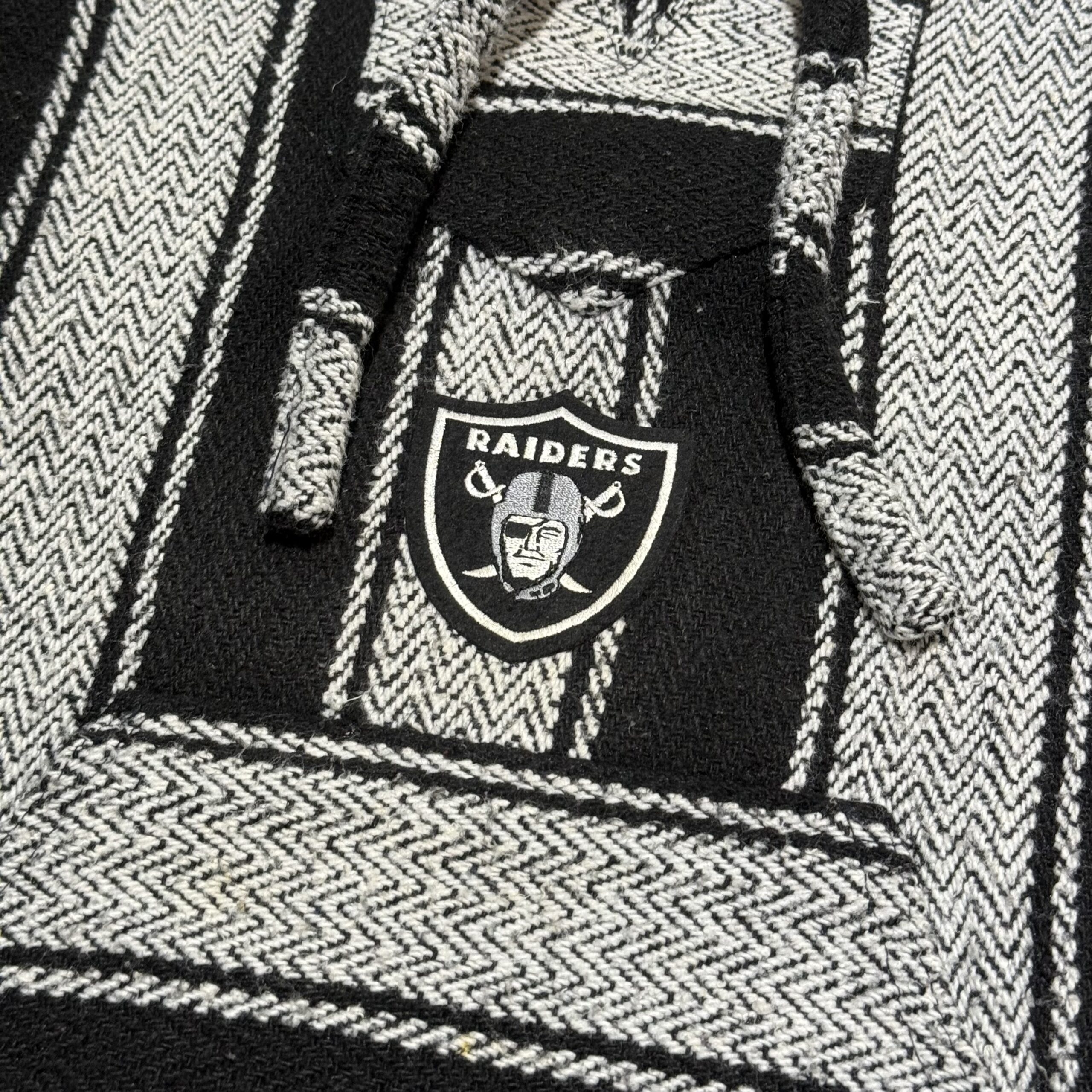 90年代「Earth Ragz」のメキシカンパーカーに、大人気NFLチーム「Las Vegas Raiders」のパッチがつけられた一着。ボディのカラーリングとRaidersのチームカラーであるシルバーとブラックの配色も上手くリンクしており、抜群にかっこいい一着になっております。