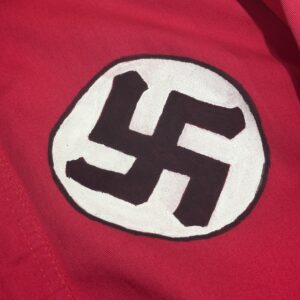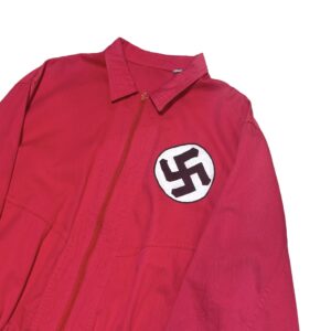 発色の良いレッドボディにハーケンクロイツのペイントが施された一着。特にパンク好きの方や、インパクトのあるデザインがお好きな方におすすめです。