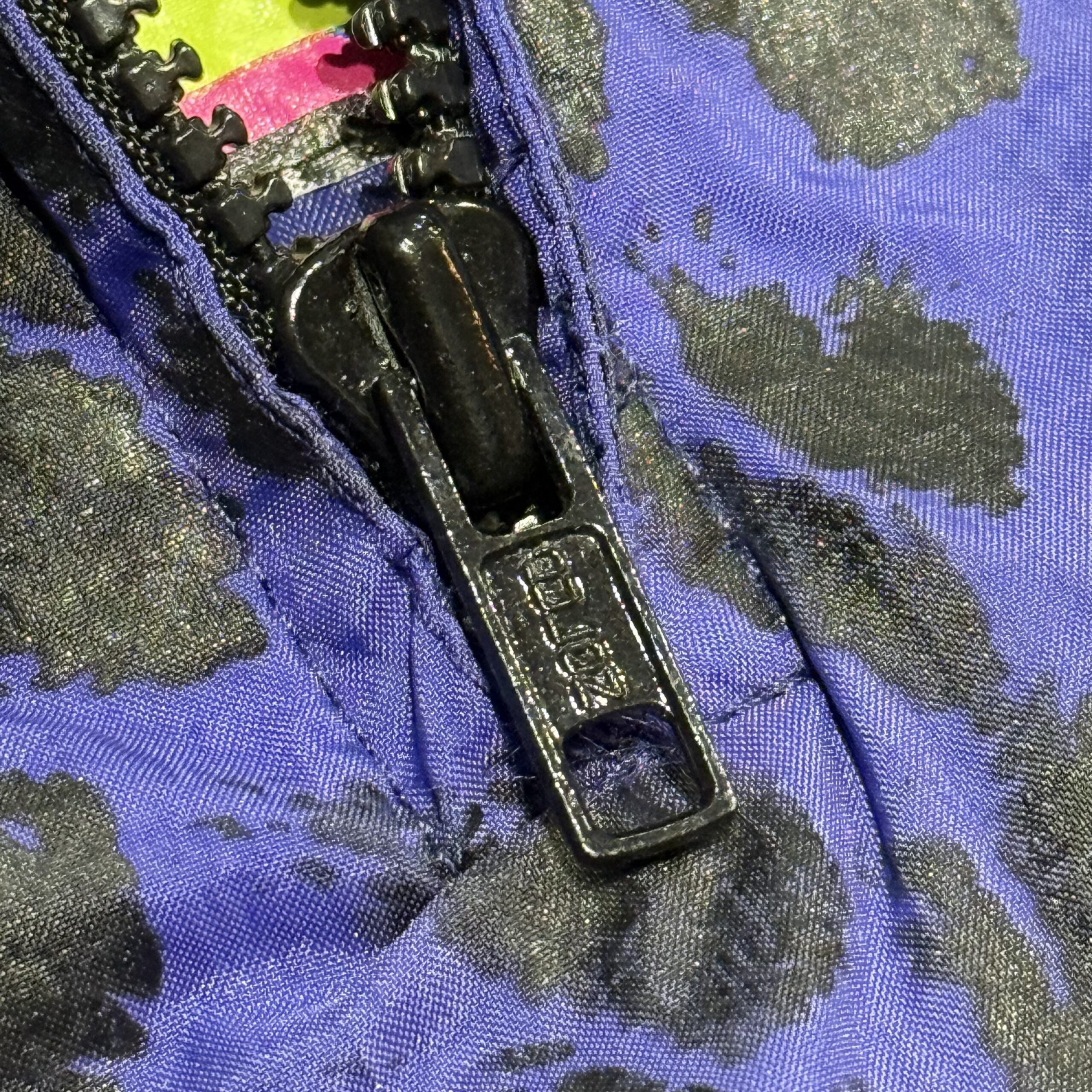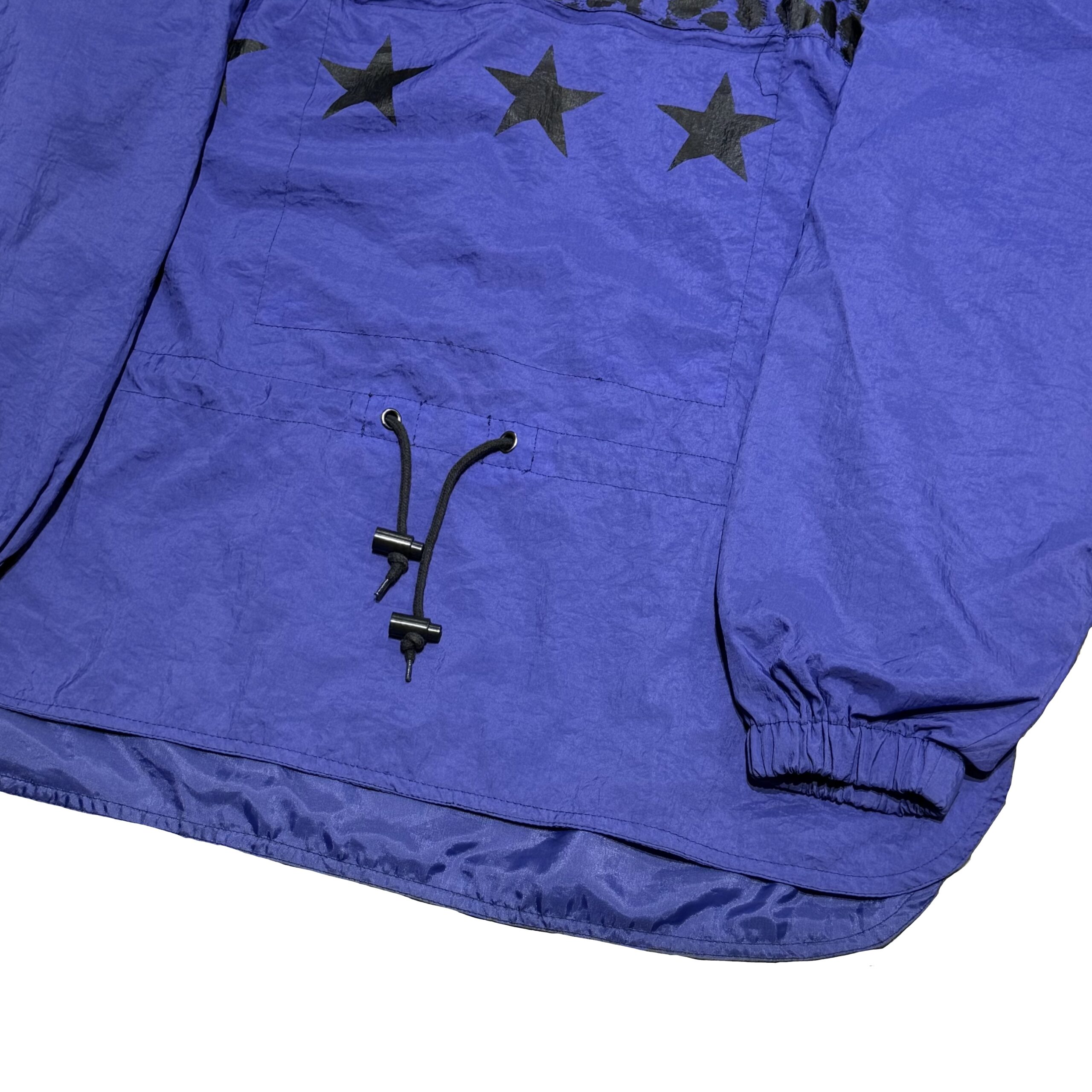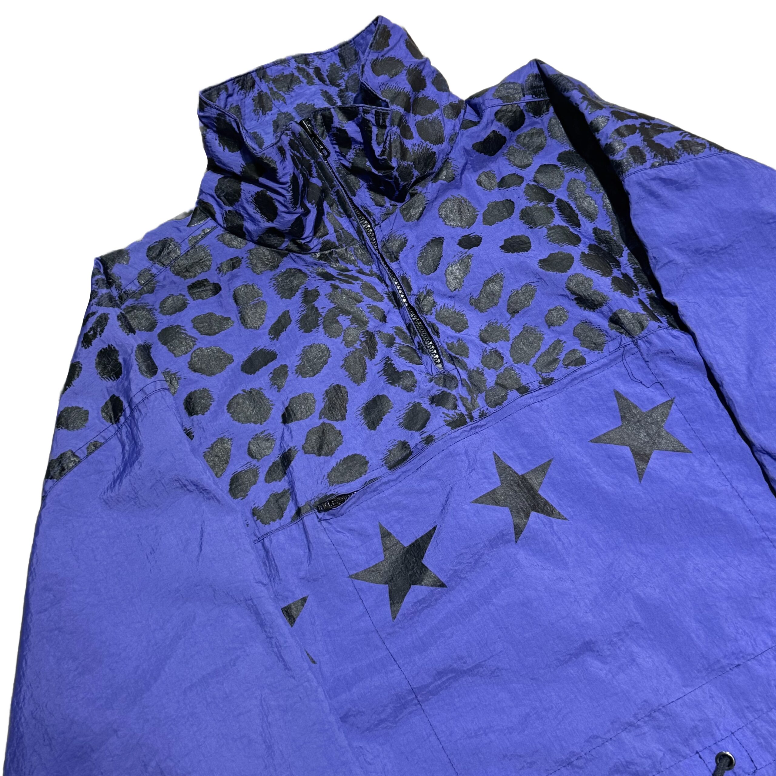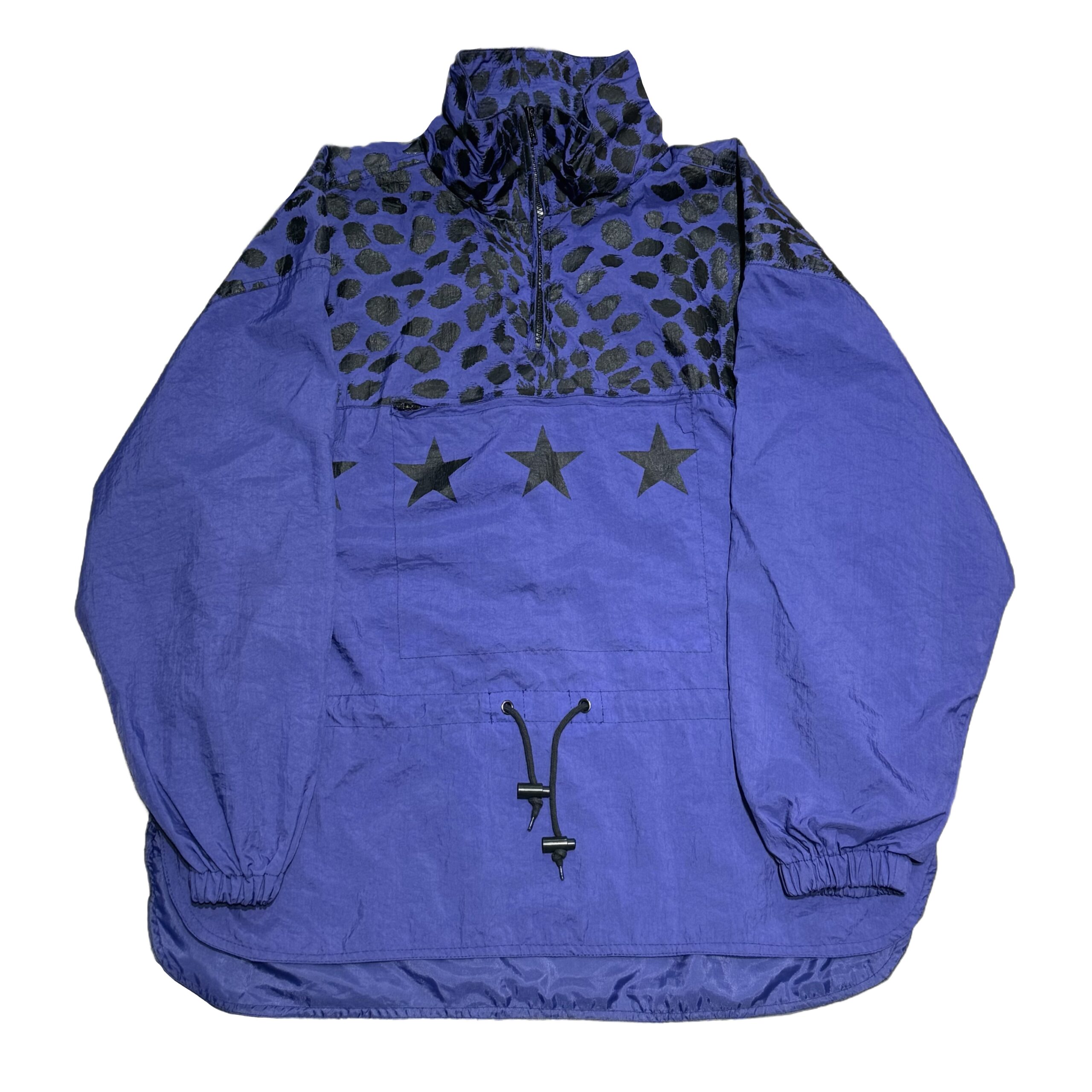 パープルボディにレオパードと星のデザインがプリントされたかなり珍しい一着。フロントはハーフジップ、裾にはスリットが入っております。シャツの様な感覚でサラッと着用して頂けるかなと思います。Sサイズ表記ですが、Lサイズ相当の大きさになります。