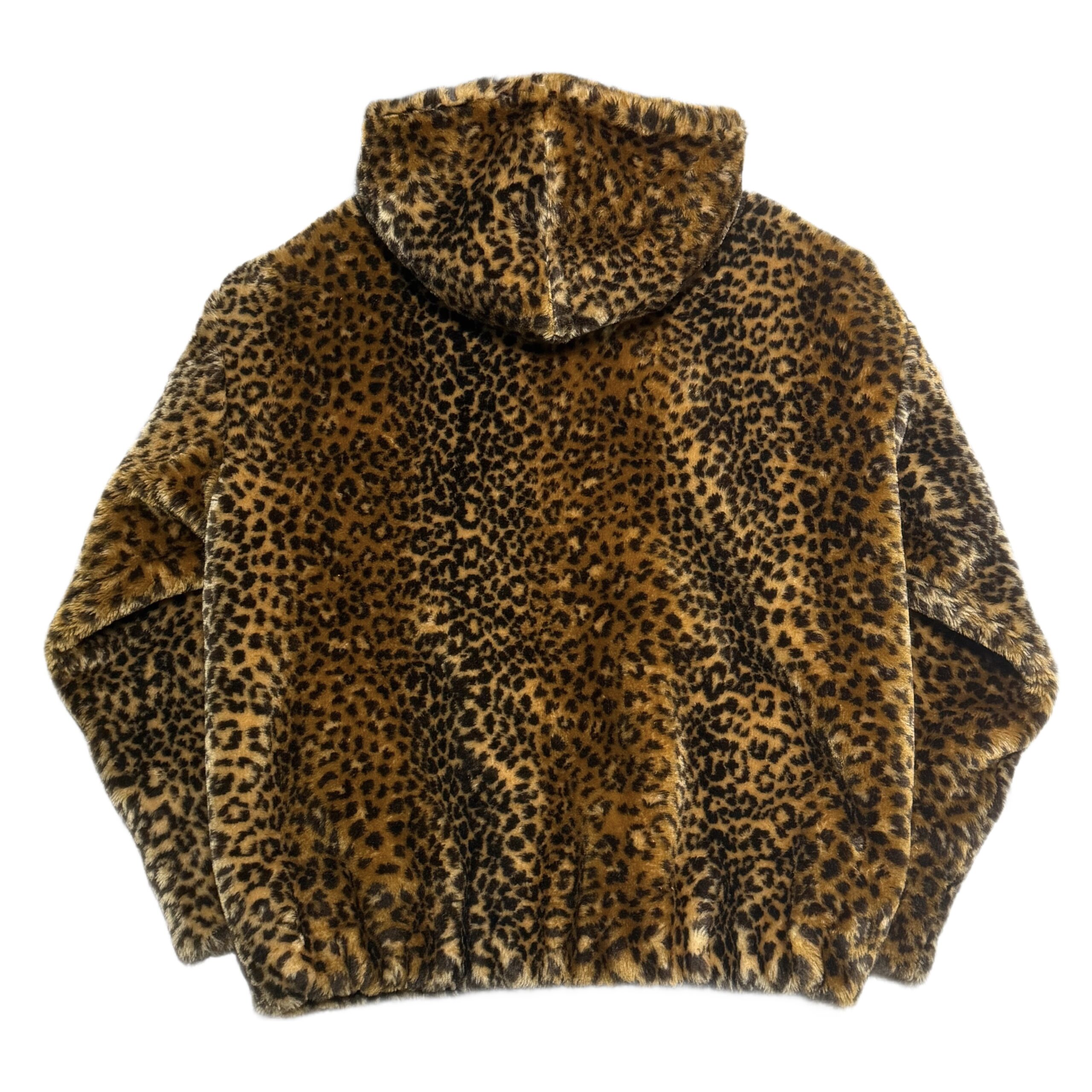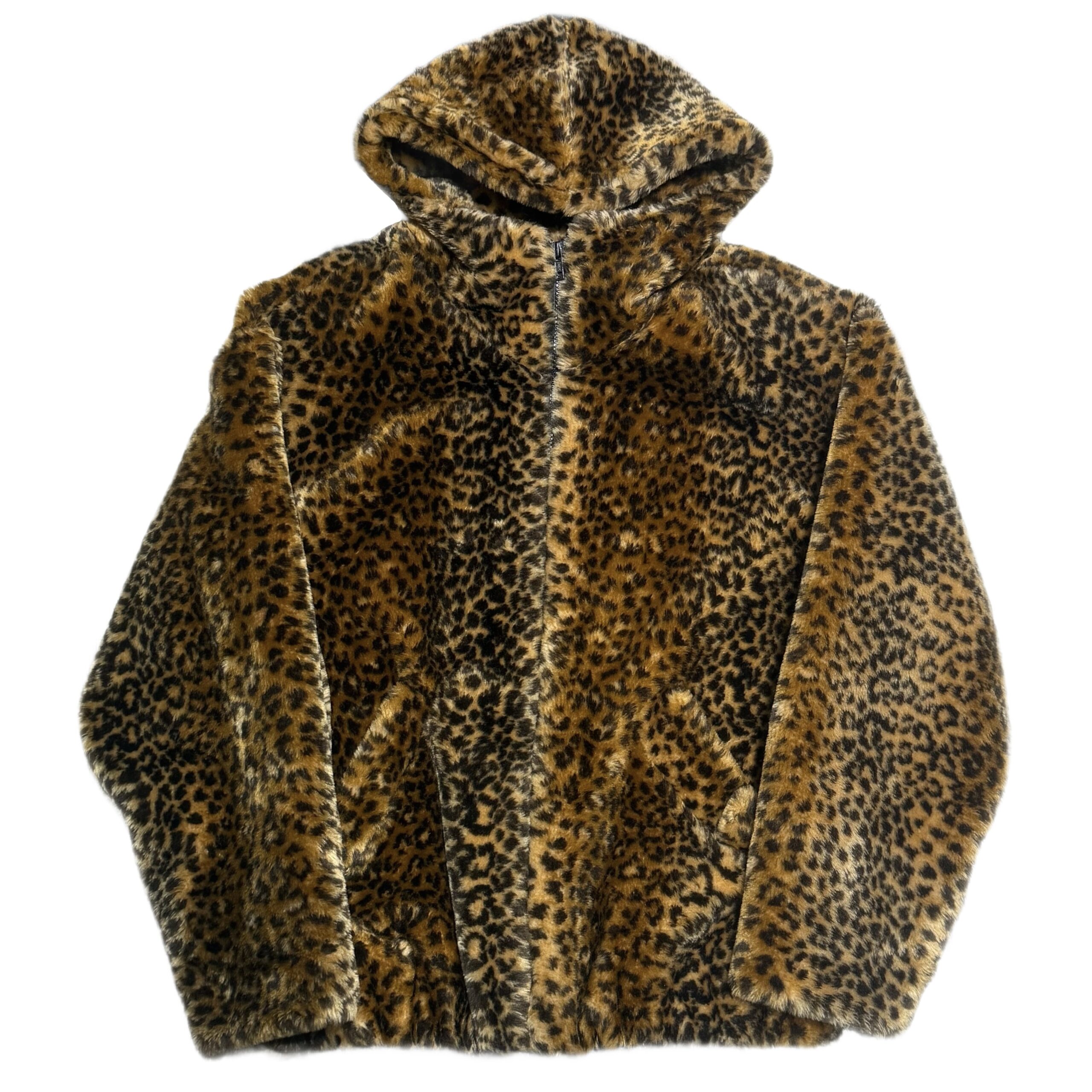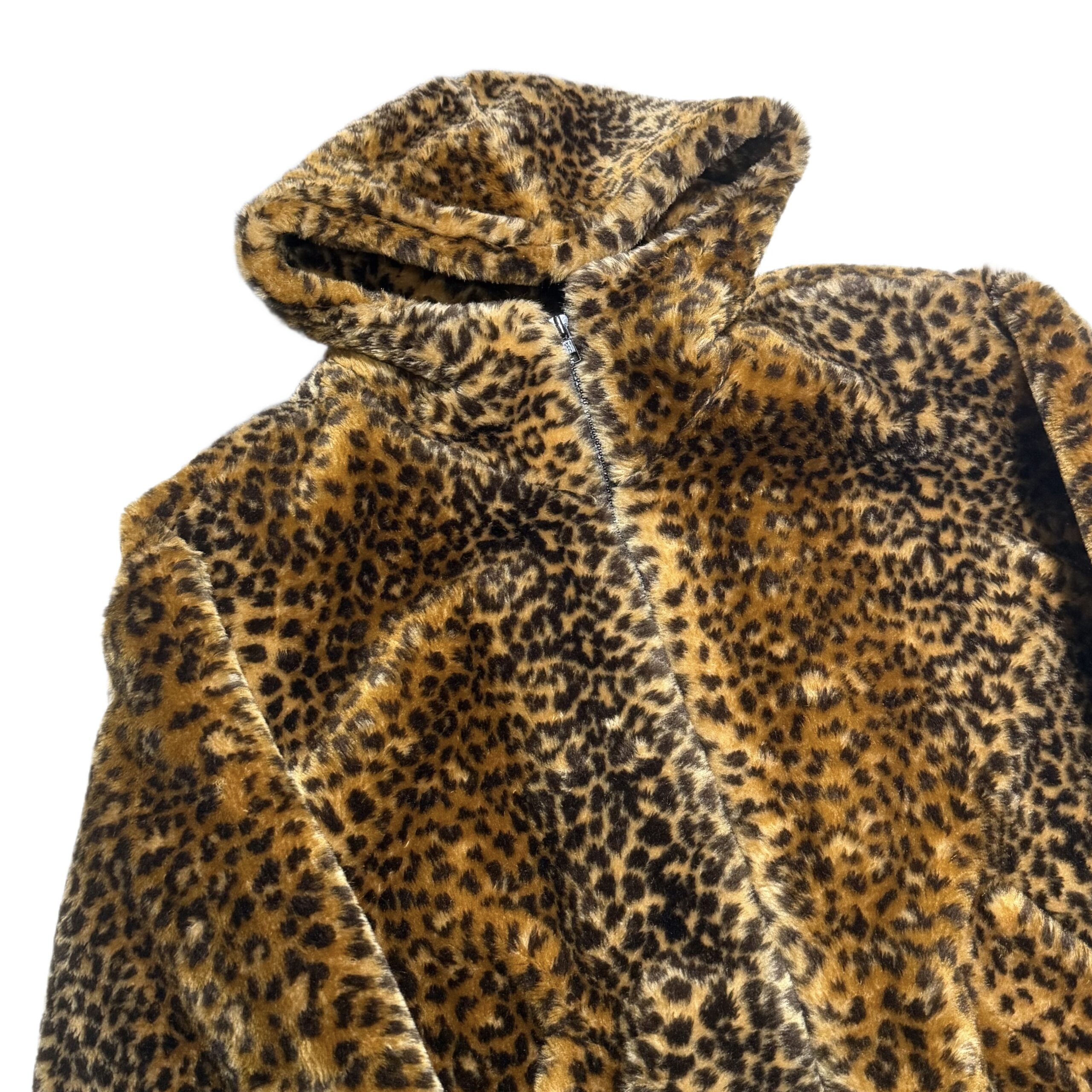 レオパード柄のフェイクファーで構築された一着。身幅はしっかりありながら、短丈のシルエットとなっており、今かなり需要のある形かなと思います。また、フード付きの所も嬉しいポイントですね。