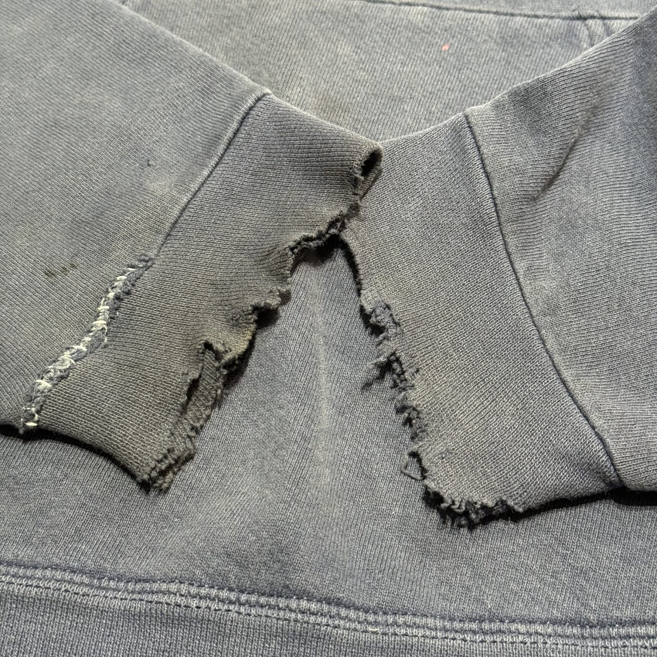フロント、右袖口にはリペアが施されており、全体的に絶妙なボロさ加減も相まって雰囲気のある一着に仕上がっております。