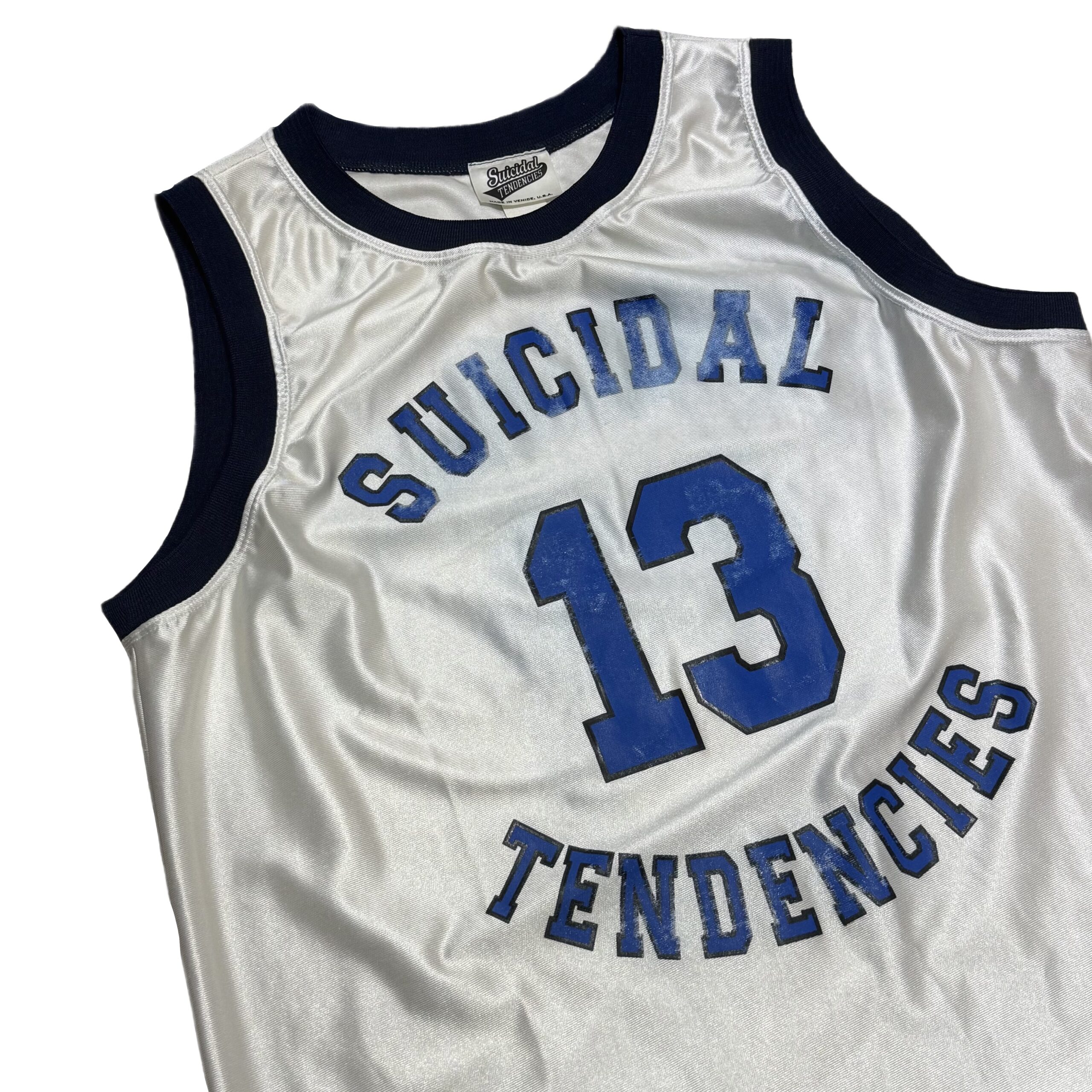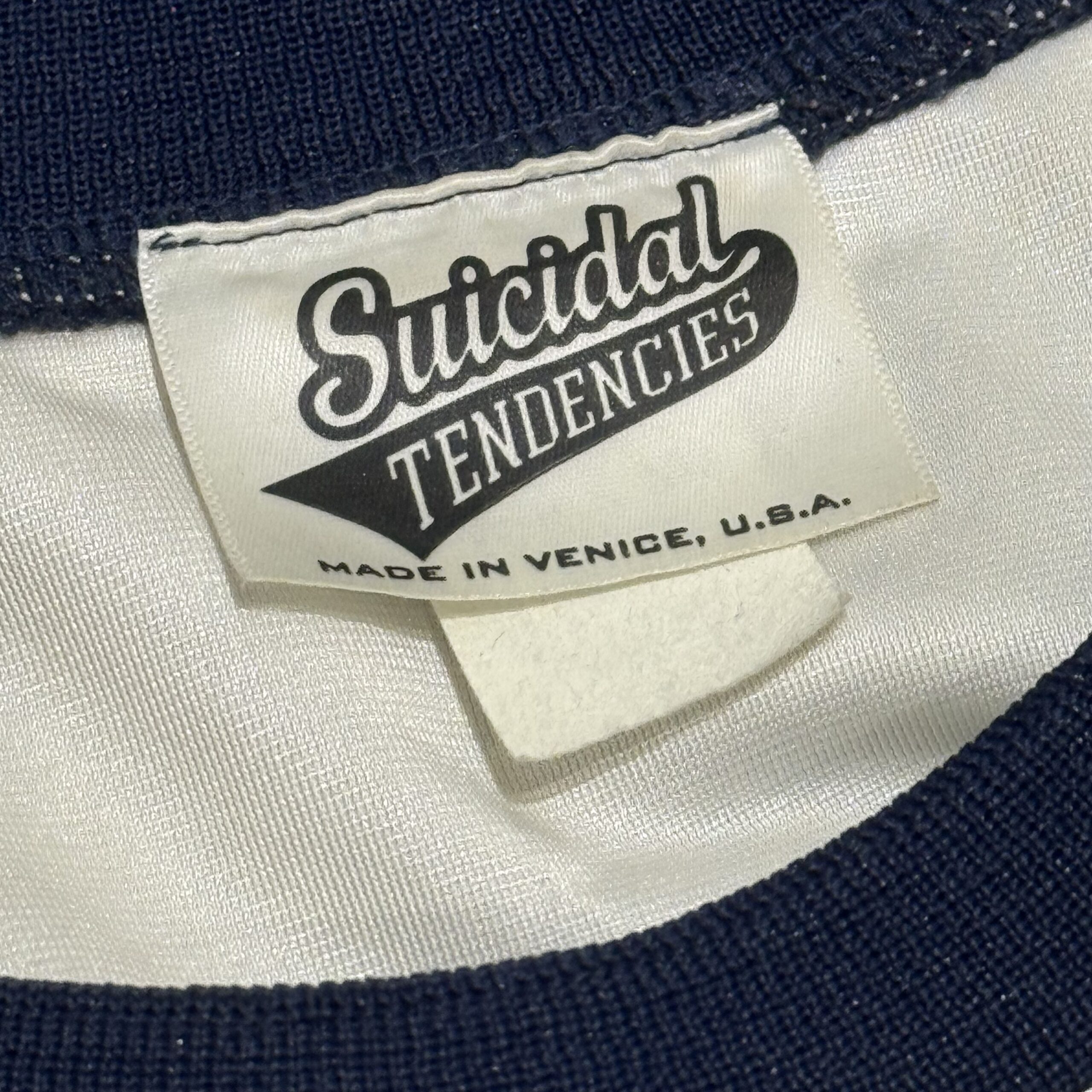 アメリカのクロスオーバー・スラッシュの先駆者「Suicidal Tendencies」。ホワイト × ブルーのグッドカラーリングで構成されたゲームシャツとなっております。また、サイズもXLと大きめで、シャツの上からでもゆとりをもって着用して頂けるかなと。