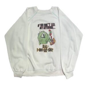 ホワイトボディにカマチョモンスターのプリントが施された一着。ご存知の方も多いと思いますが、あのSupremeが使用した元ネタです。サックスカラーのステッチも良いアクセントになっております。