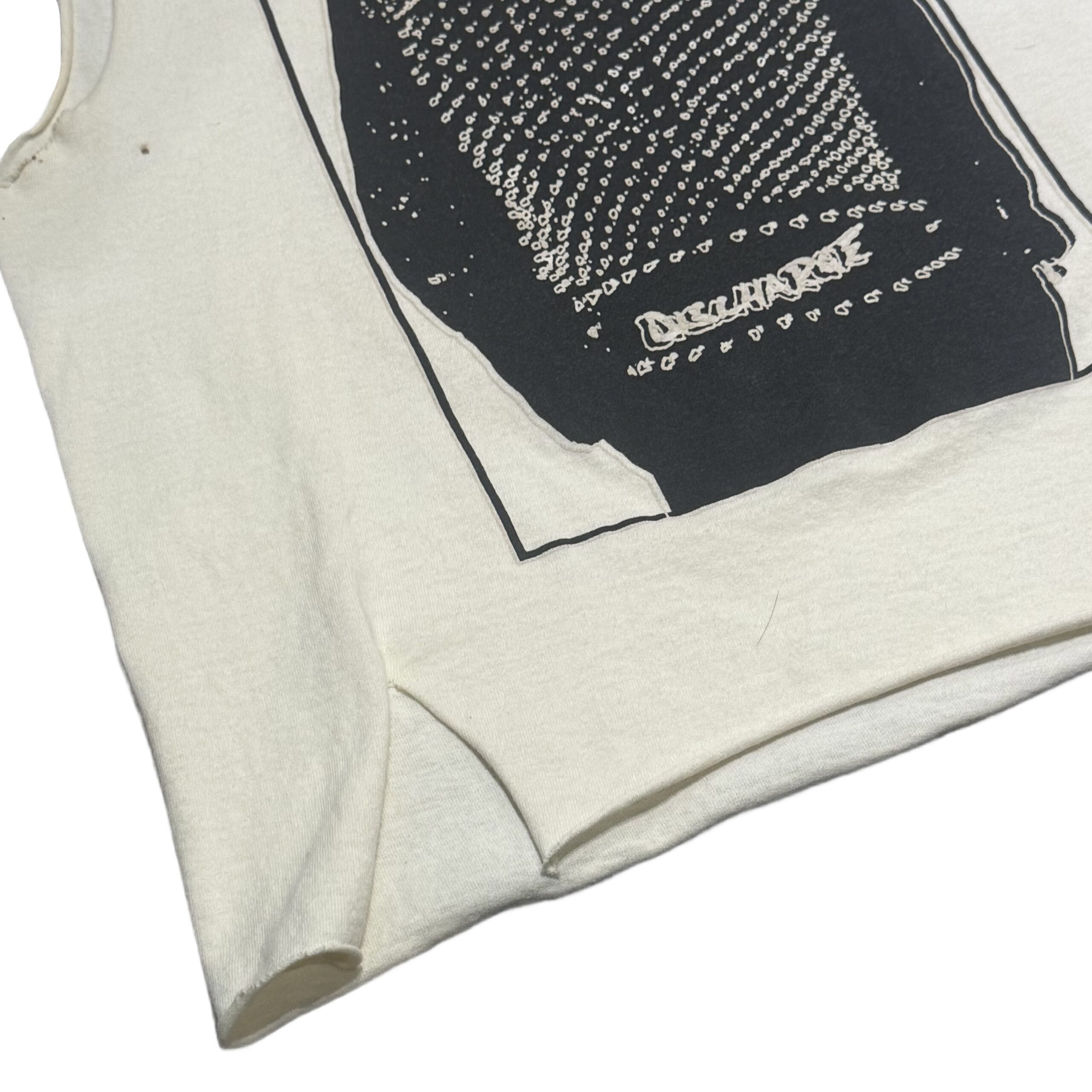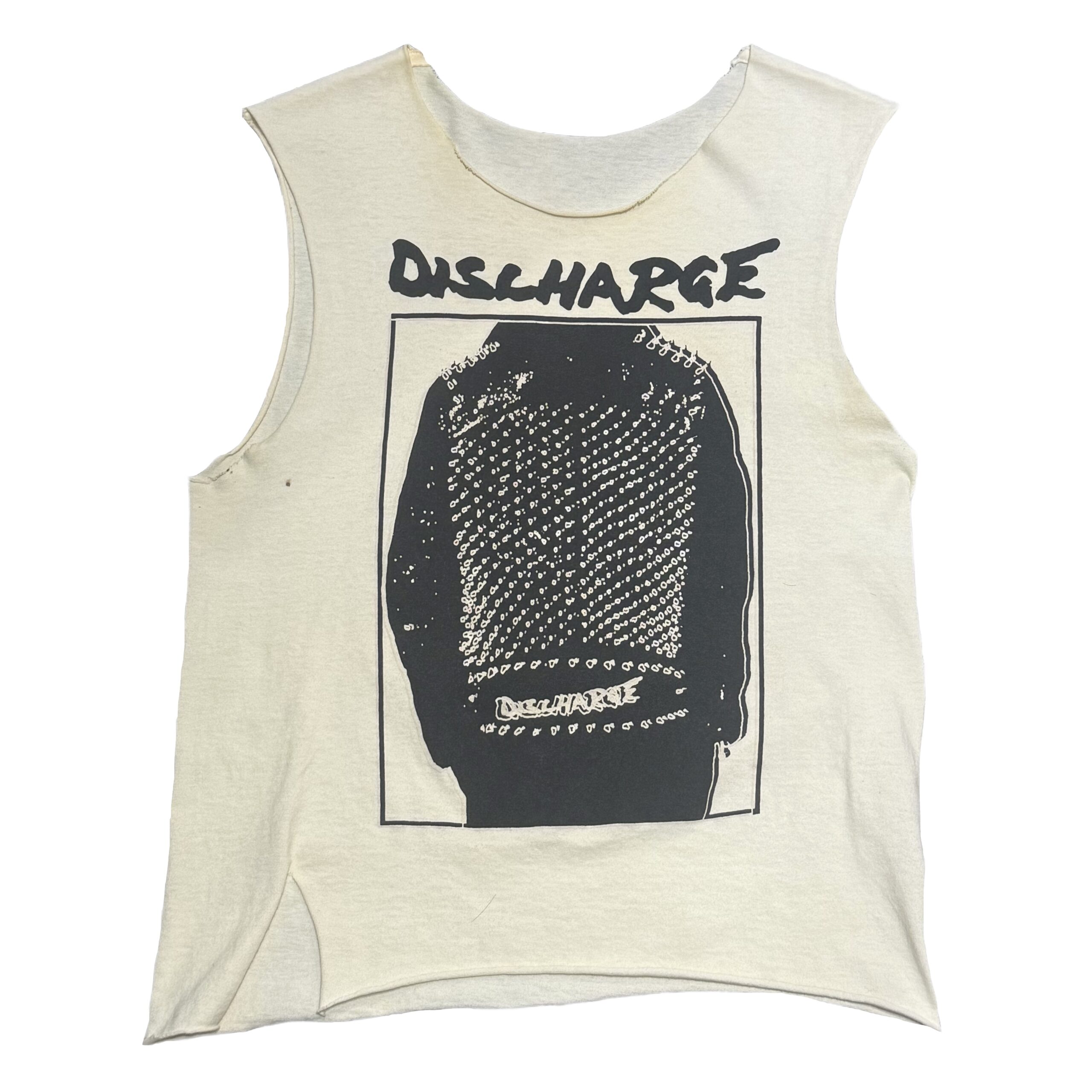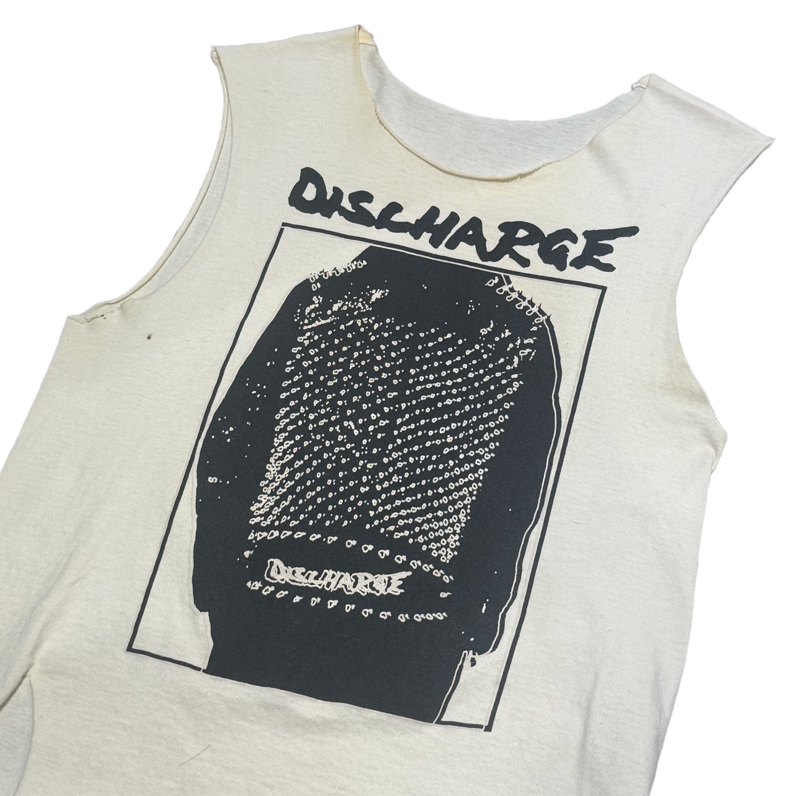 イギリスのハードコア・パンクバンド「Discharge」のプリントが施された一着。首元リブや裾、さらに袖もカットされております。これ一枚でももちろん良いですが、重ね着やインナーとしてもかなり使い勝手が良い一着かなと思います。