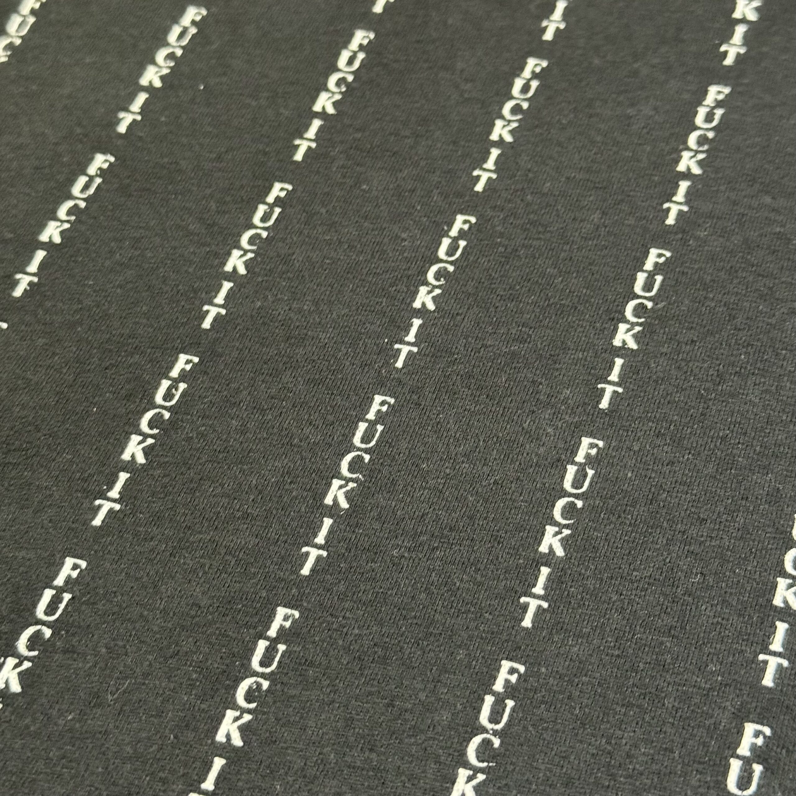 一見、ただのストライプに見えますが、よく見ると「FUCK IT」のデザインが施された一着。様々なスタイルにも落とし込みやすく、かなり使い勝手がいいかなと。