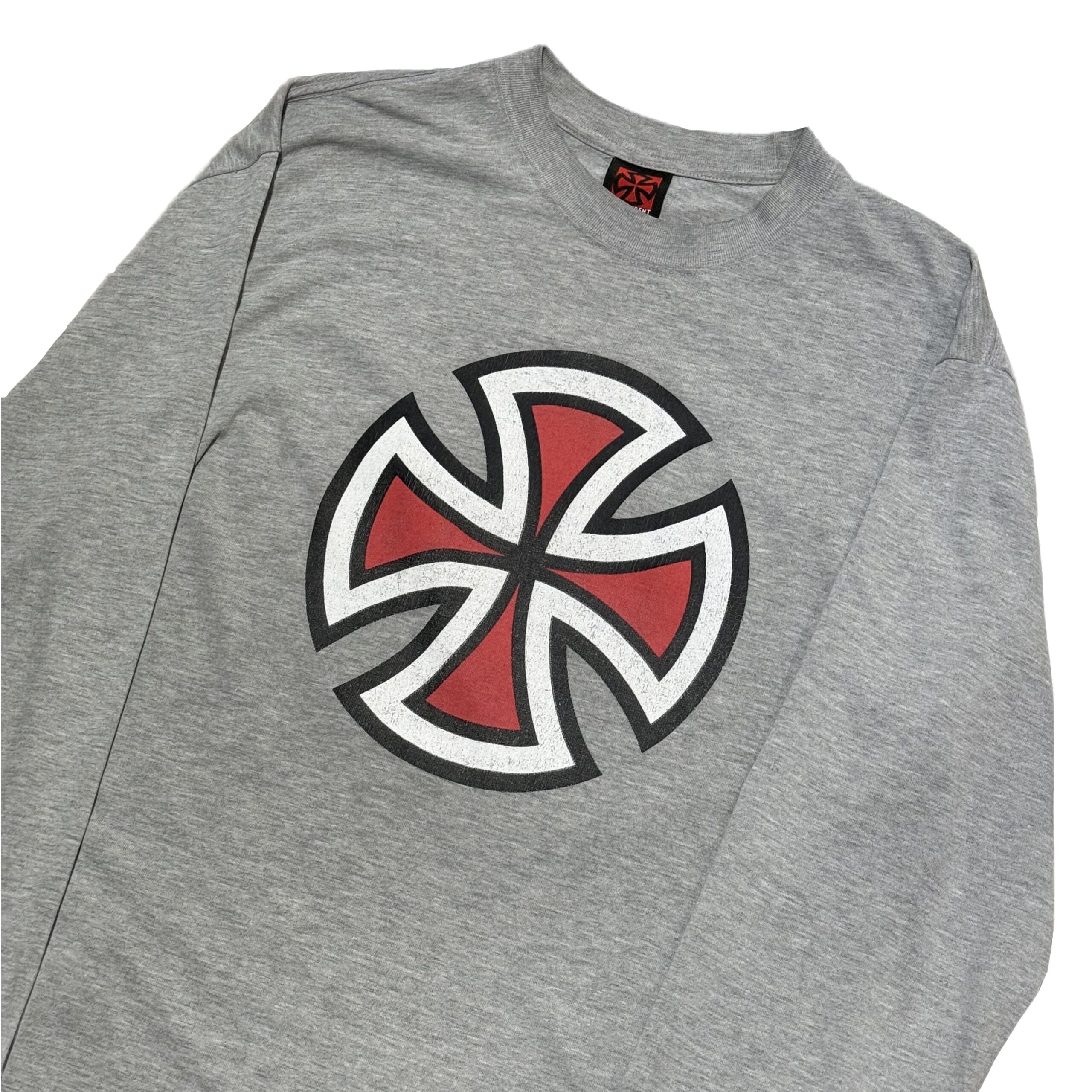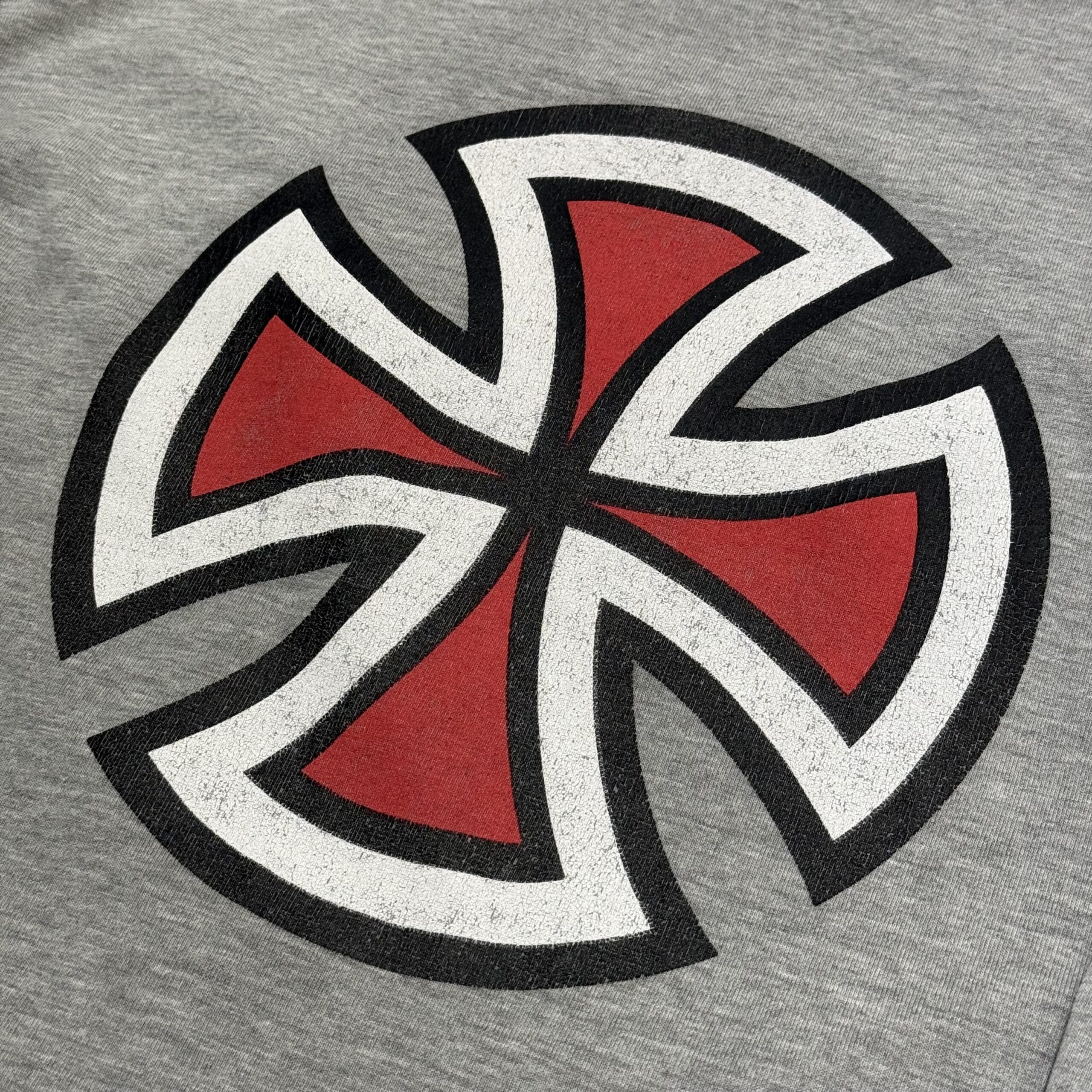 スケート物の中でも不動の人気を誇る「Independent」。グレーボディに現在使えなくなったアイアンクロスのロゴがプリントされた一着。基本バックプリントが多い中、こちらはフロントにプリントされた珍しいタイプです。