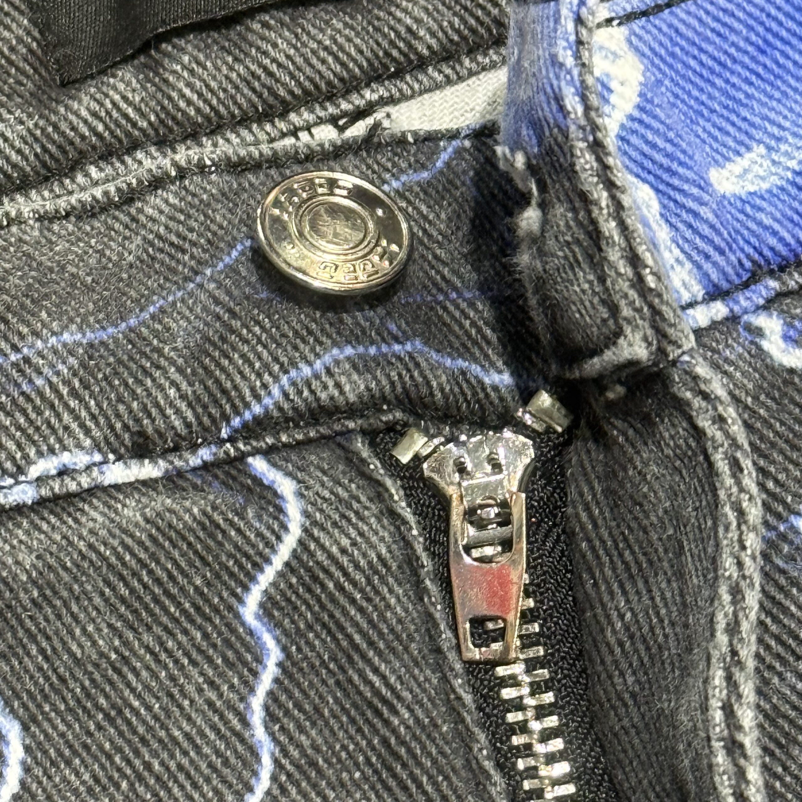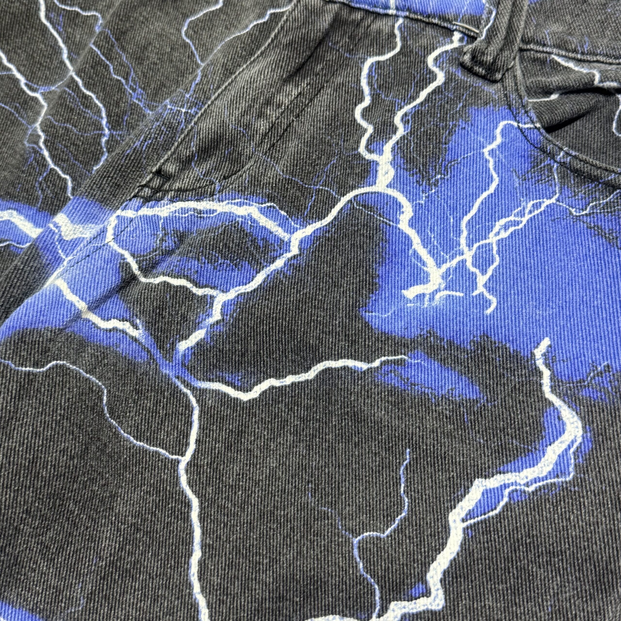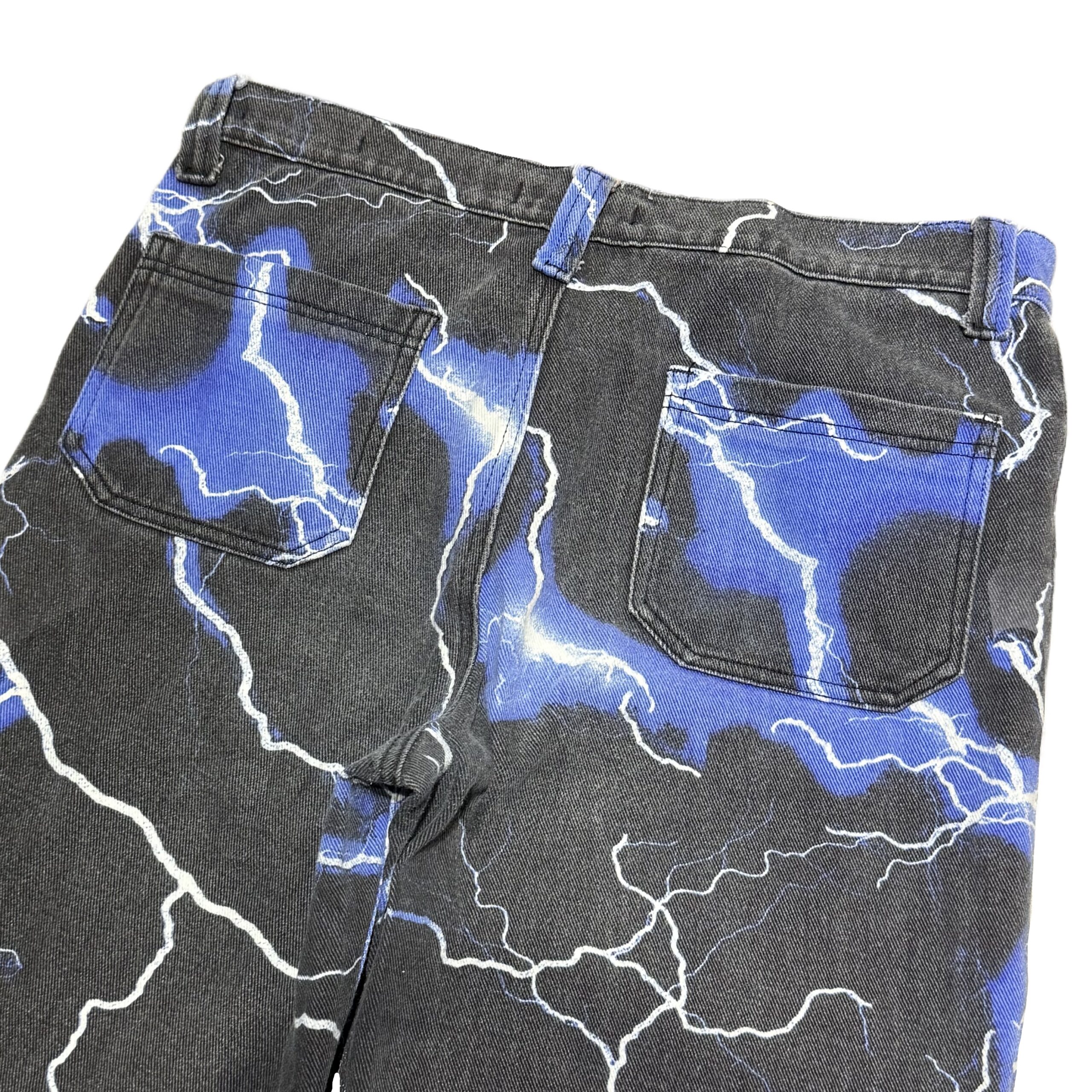 ライトニングの総柄デザインがプリントされたパンチのある一着になっております。長く履きこむことで、更に良い雰囲気の経年変化も期待できそうです。