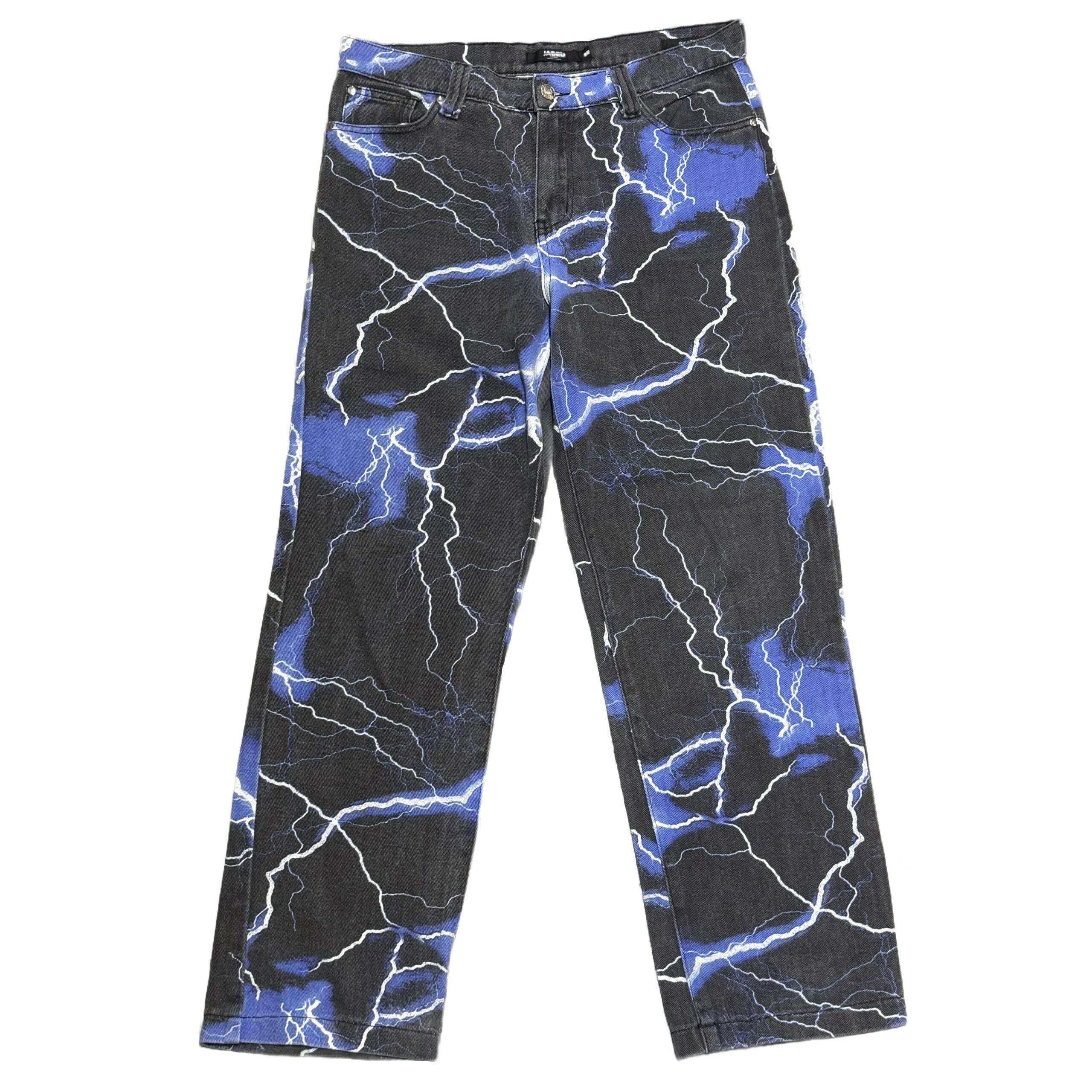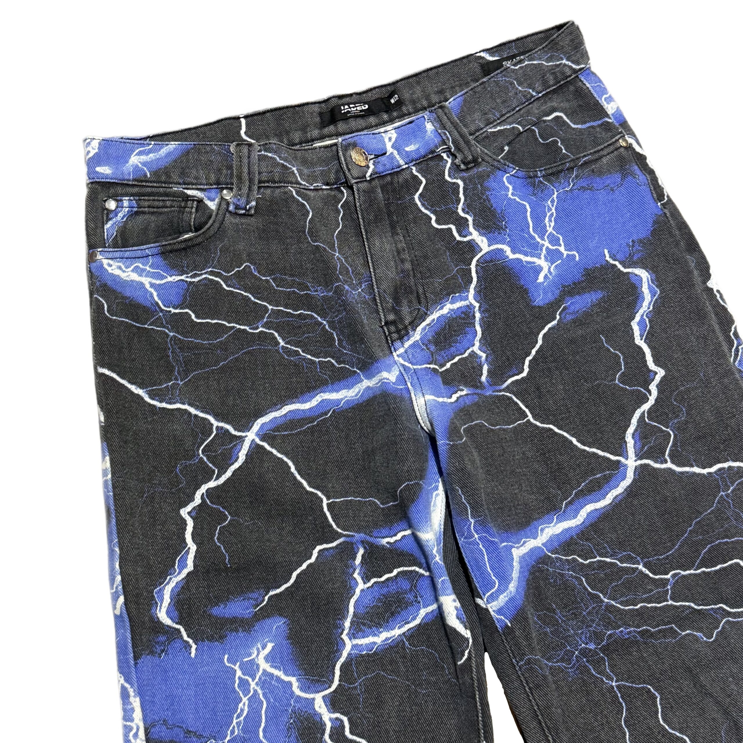 Jaded London Lightning Bolt Print Jeans (Blue)