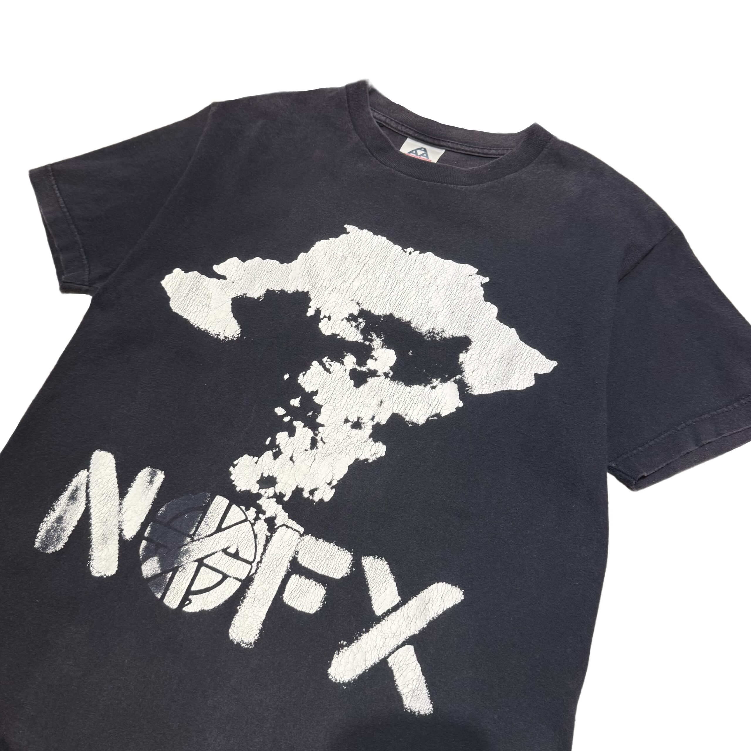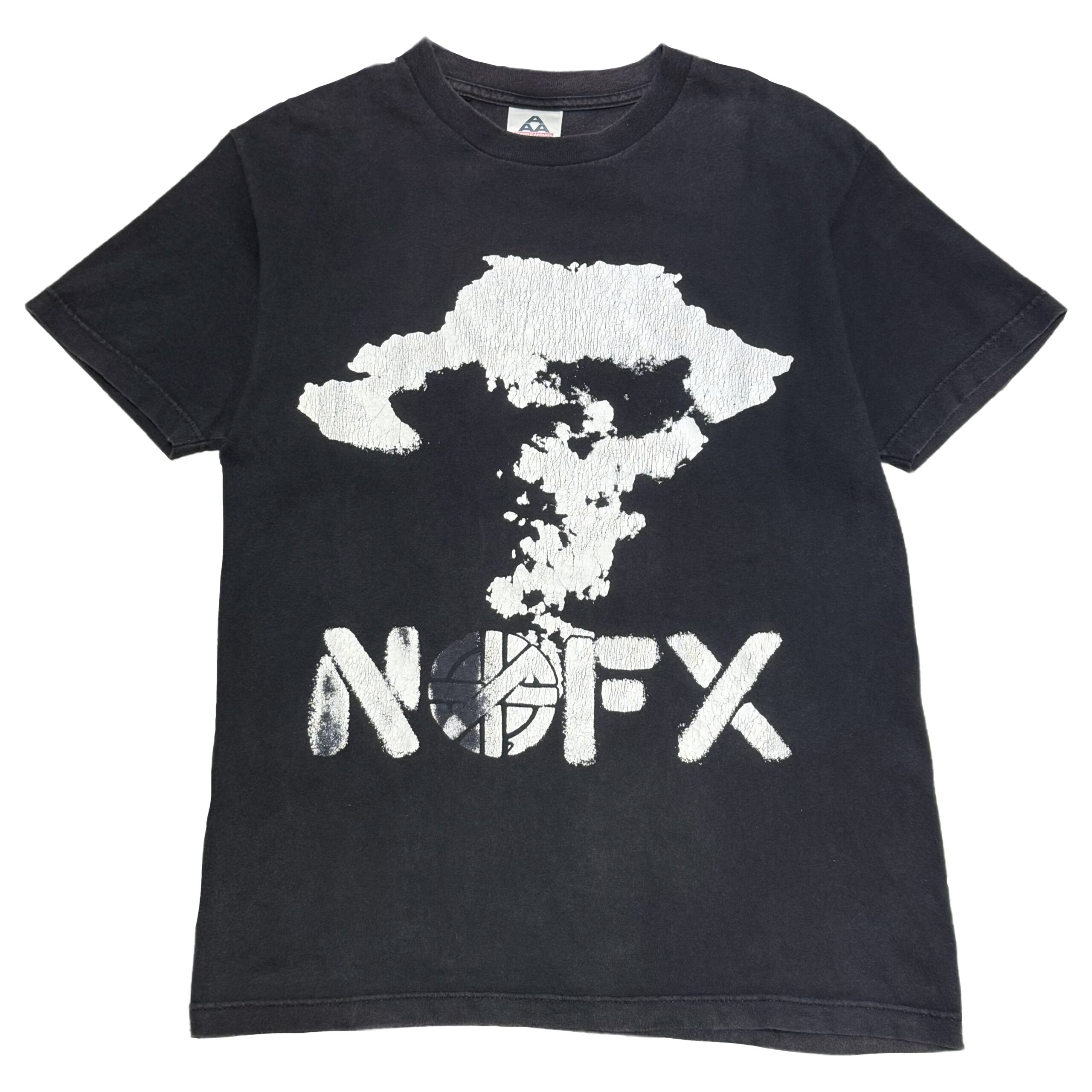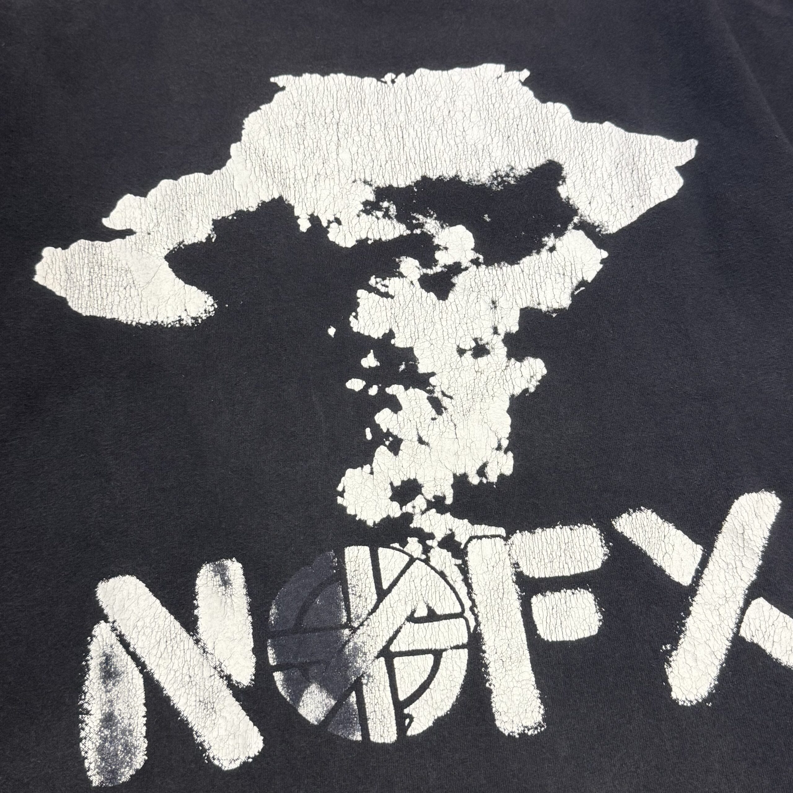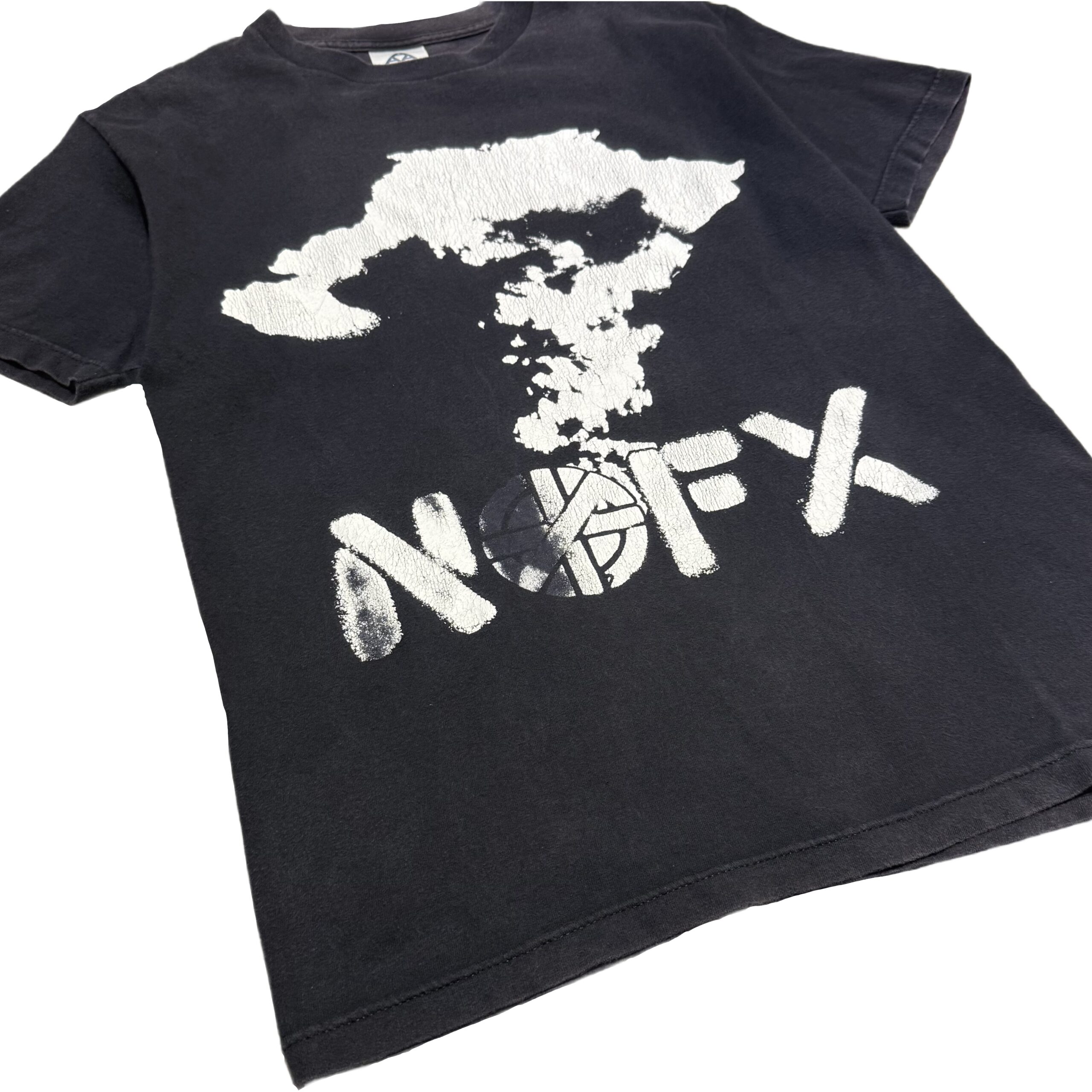 原爆のきのこ雲にNOFXロゴ。OのスペルはCRASSマークという政治・HARD CORE色の濃いデザインがプリントされた一着。ボディのフェード感やプリントの擦れも相まって抜群の雰囲気を醸し出しております。