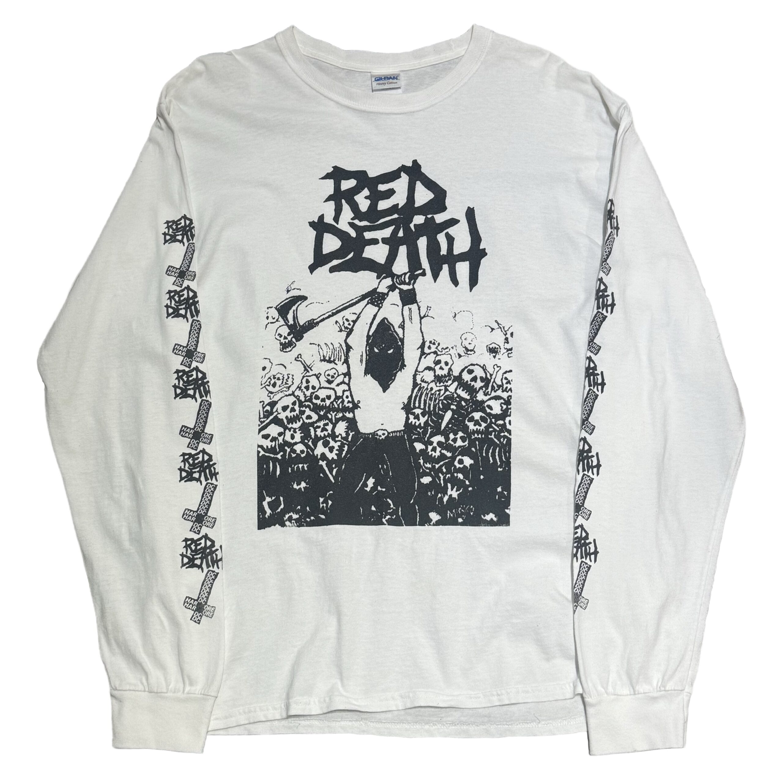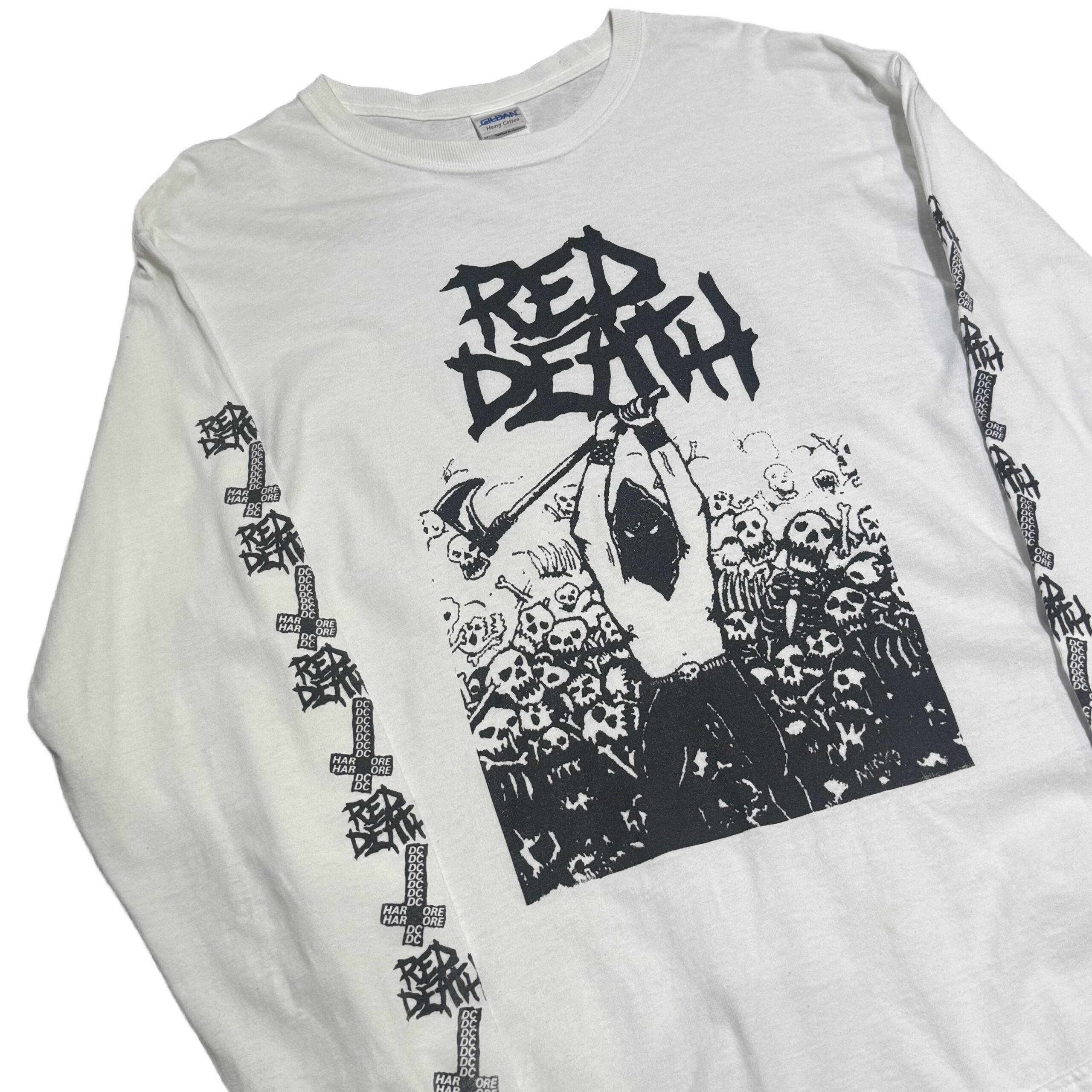 ワシントンD.C.のクロスオーバー・スラッシュバンド「Red Death」。ホワイトボディにフロント、袖にプリントが施された抜群にかっこいい一着。またサイズもLとゴールデンサイズです。そもそも弾数が少ない為、お探しの方は是非この機会にご検討下さい。