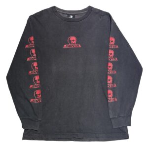 良い雰囲気にフェードしたブラックボディに、お馴染みのブランドロゴが全体にプリントされた一着。レッドのプリントはかなり弾数も少ないです。特にスケート物好きの方には堪らない一着ではないでしょうか。