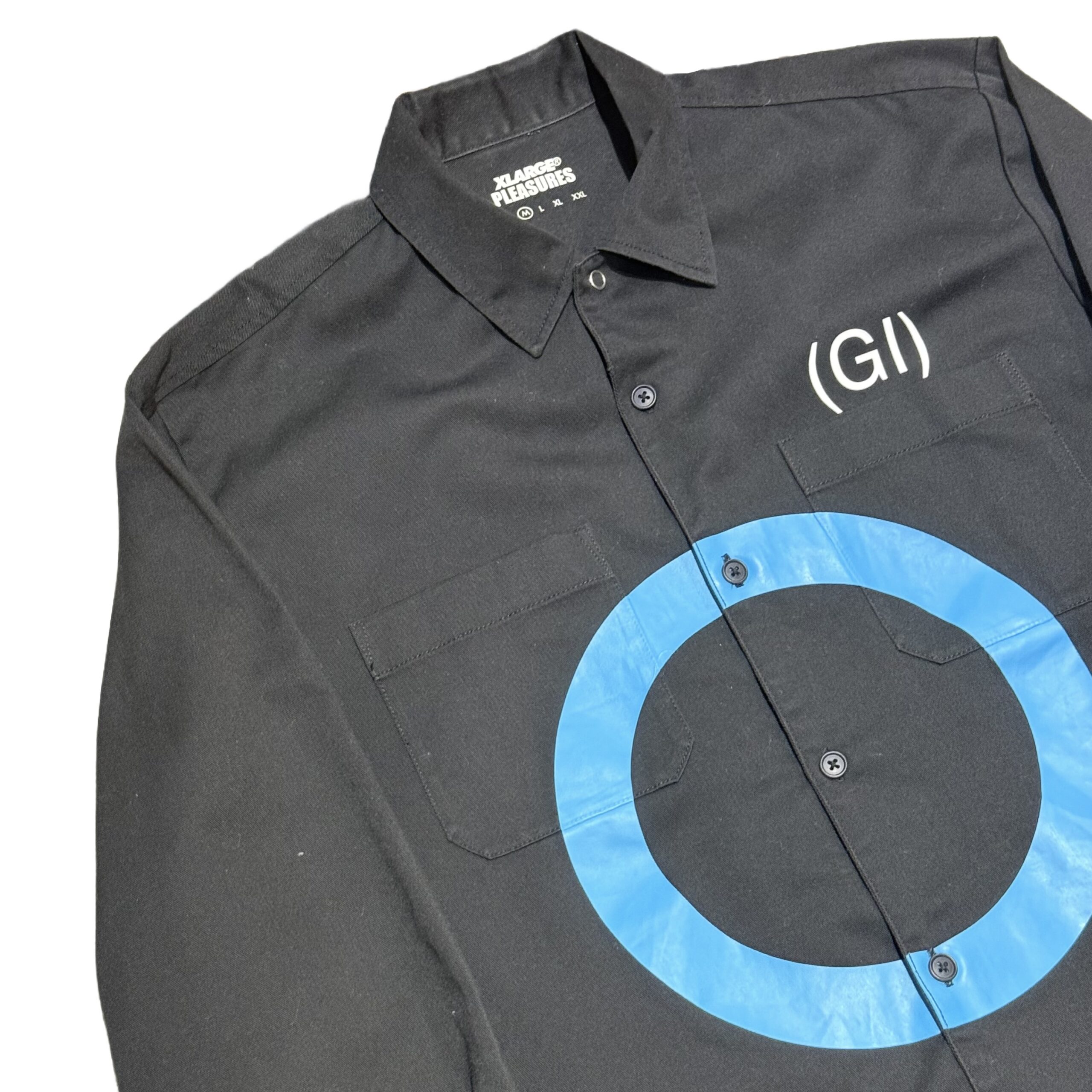 夢のトリプルコラボレーションによって当時発売された一着。フロント、バックにはTHE GERMSのプリントが施され、袖口には「XLARGE」と「PLEASURES」のブランドロゴが配置されております。発売当時は即完でかなり人気の高い一着となります。