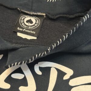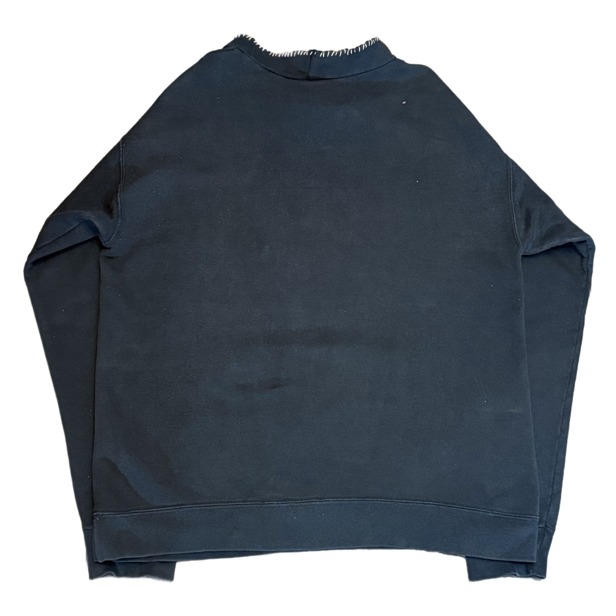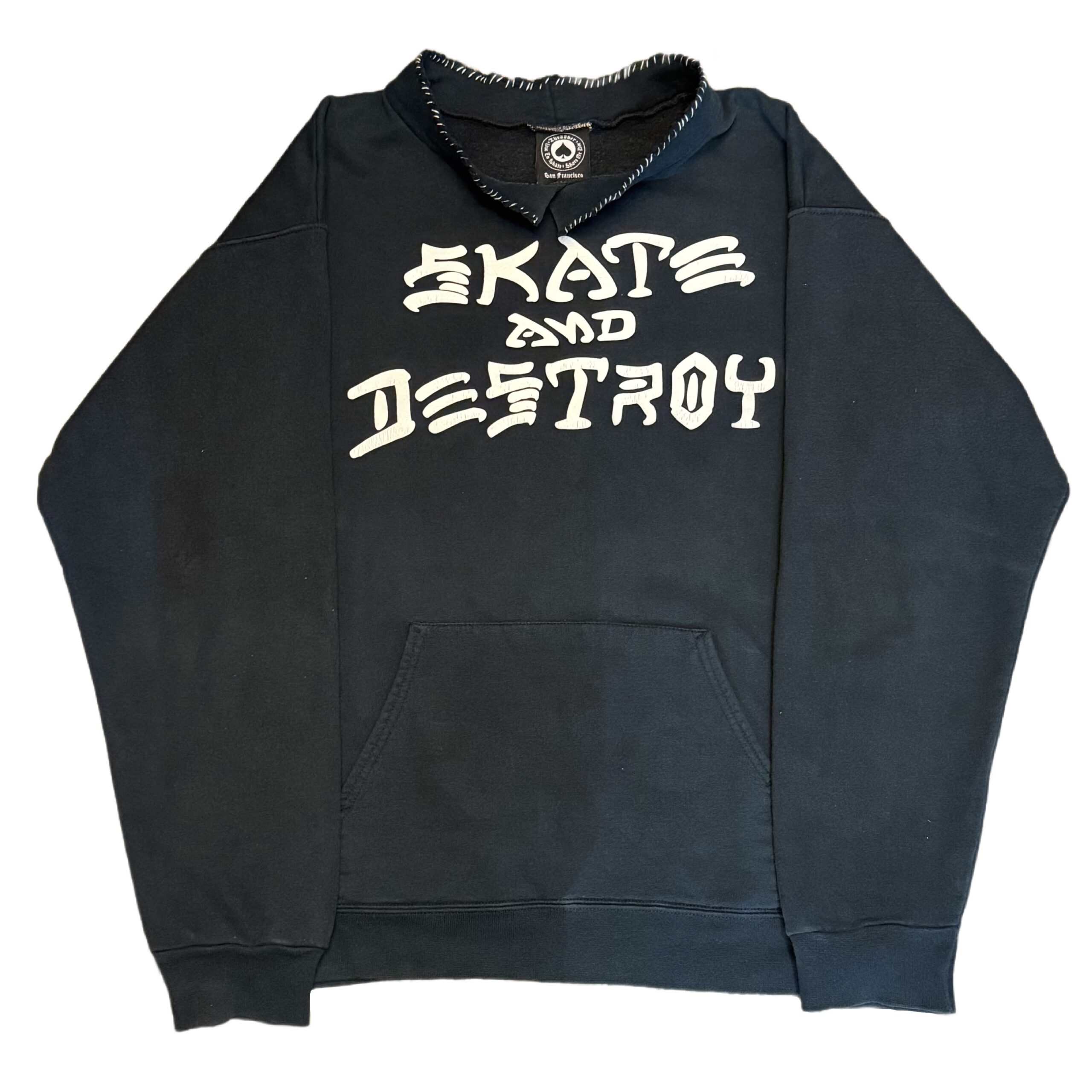 フード部分がカットされた雰囲気抜群の一着。カットされた部分は白ステッチでリペアされており、全体の雰囲気とマッチして最高です。